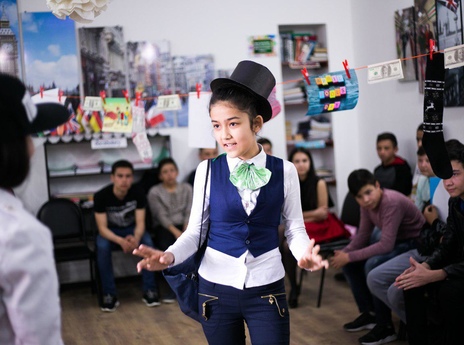 В процессе обучения мы ставим сценки и спектакли, смотрим фильмы и переводим их, поём в караоке и мн.др.